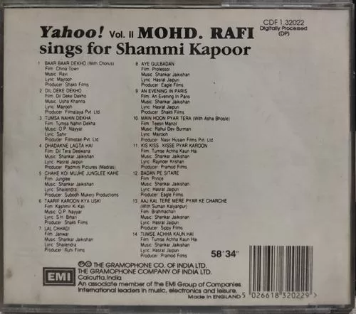 Yahoo! – Vol.II – Mohd. Rafi Sings For Shammi Kapoor – CDF 1.32022 – (Condition 80-85%) – Audio Disc