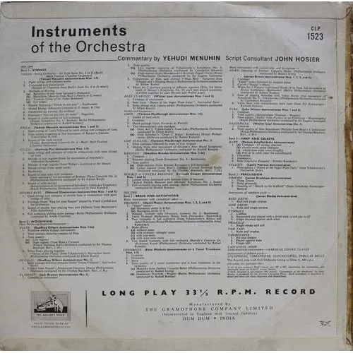 Yehudi Menuhin – Instruments Of The Orchestra – CLP 1523 – Cover Good Condition – LP Record